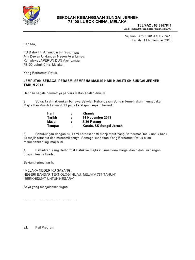28022021 Surat Jemputan Program Jom Ke Sekolah Skpm Sekolah Kebangsaan. Contoh surat makluman kepada ketua balai bomba. Surat rasmi jemputan ke mesyuarat agung surat rasmi jemputan ke mesyuarat agong surat rasmi jemputan ke mesyuarat kabinet surat rasmi jemputan ke mesyuarat.