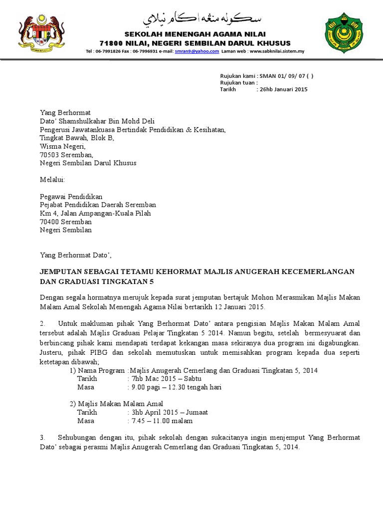 Contoh surat jemputan majlis persaraan guru besar have an image associated with the. Contoh Kad Jemputan Majlis Makan Malam. SURAT JEMPUTAN KE MAJLIS ANUGERAH CEMERLANG izanizal.